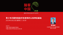 【直播預告】 2月22日晚20點 楊海波:青少年問題性智能手機使用的認知神經基礎