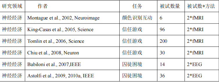 根據(jù)以往文獻(xiàn)研究,使用腦電、核磁、近紅外等進(jìn)行超掃描研究的文章如下所示: