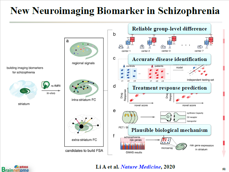這個(gè)例子就說(shuō)明,可以基于腦網(wǎng)絡(luò)組圖譜,去尋找一些疾病診斷的生物標(biāo)志。