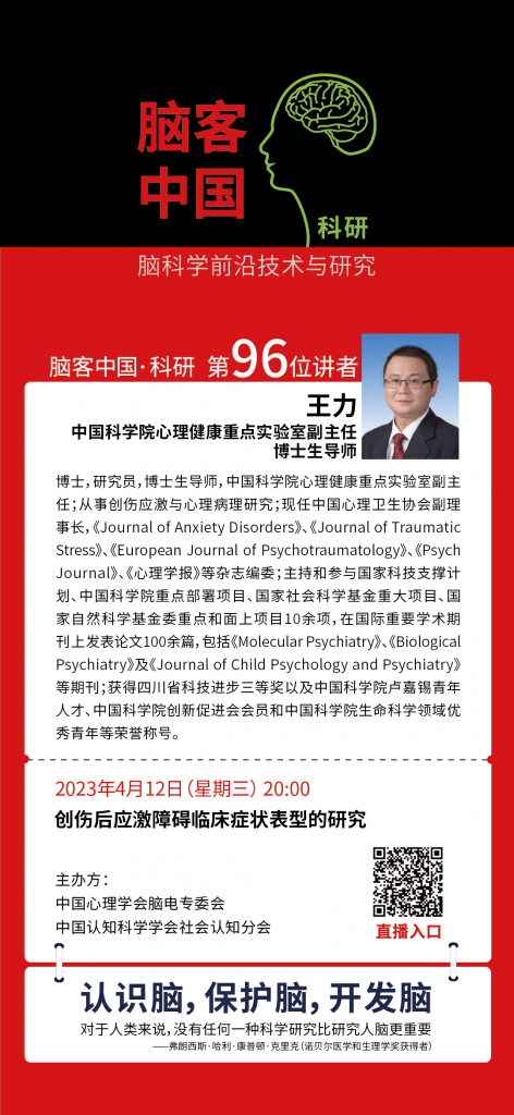 【直播預(yù)告】 本周三晚20點(diǎn) 王力:創(chuàng)傷后應(yīng)激障礙臨床癥狀表型的研究