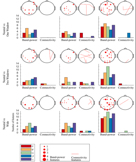 在中性條件與單窗口條件的比較中,中央頂葉和額葉區(qū)域的α和β頻段功率增加。而在“中性條件”vs“雙窗”,“中性條件”vs“加寬”的條件中,都顯示出α和β功率的降低。此外,連接分析進(jìn)一步表明,信息從中央頂葉到額葉電極的傳遞存在變化,這些變化主要出現(xiàn)在θ和α頻段。