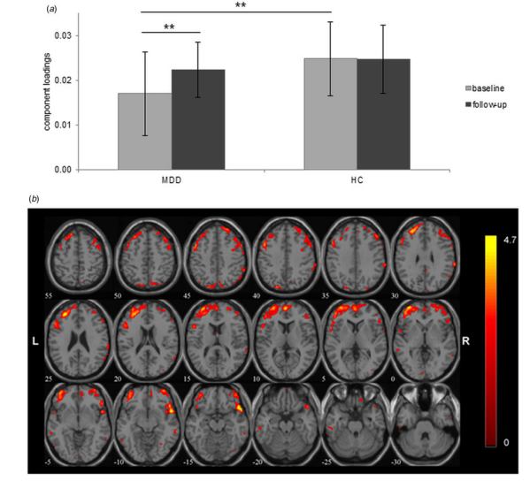 靜息狀態(tài)功能磁共振成像(rs-fMRI)是一種檢測內(nèi)在神經(jīng)活動(即在沒有外在認(rèn)知需求的情況下的神經(jīng)活動)的方法。幾項橫向研究發(fā)現(xiàn),大腦內(nèi)在神經(jīng)活動與認(rèn)知,特別是注意力、執(zhí)行功能和記憶之間存在關(guān)聯(lián)。然而,盡管認(rèn)知在重度抑郁癥中具有臨床意義,但迄今為止很少有研究試圖將重度抑郁癥患者的認(rèn)知功能障礙與內(nèi)在神經(jīng)活動聯(lián)系起來。除此之外,對重度抑郁癥患者認(rèn)知矯正的縱向研究也較為缺乏,與重度抑郁癥改善相關(guān)的神經(jīng)機(jī)制目前尚不清楚。