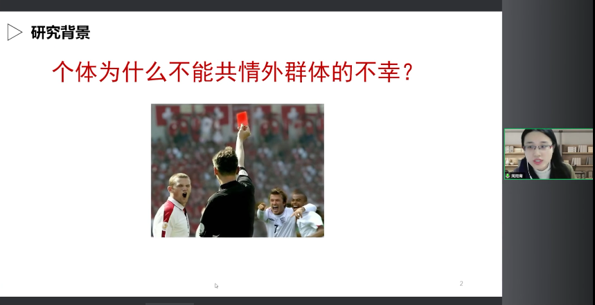 大家好,我是周雨青。今天晚上我報告的主題是《共情的內群體偏向:機制與改變》。我過去的研究主要是想回答這樣一個科學問題,個體為什么不能共情外群體的不幸?