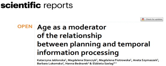 本研究Age as a moderator of the relationship between planning and teImporal information processing發(fā)表于2022年的Scientific Reports(IF:4.6),華沙社會(huì)科學(xué)與人文大學(xué)的Katarzyna Jablonska等人為本文的第一作者。