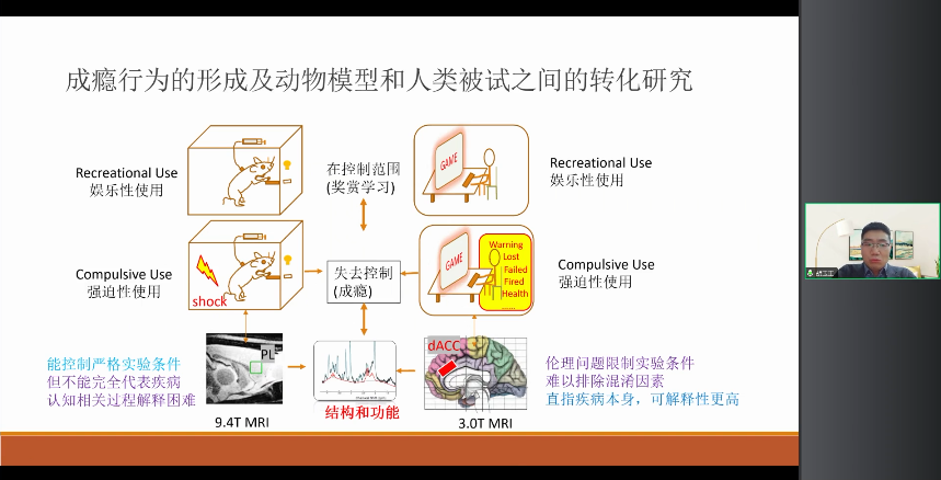 第二個是因為人的成癮,他有很多的社會因素的限制,混淆。比如說他成癮是不是因為他的社交有困難,或者是因為他生活環(huán)境里吸毒的人比較多。相反的話動物就比較好操作了,我可以嚴格去控制它一切實驗條件,進行非常精準的控制,非常復雜的策略,但是也有其局限性,比如說動物研究不能完全代表人類疾病。