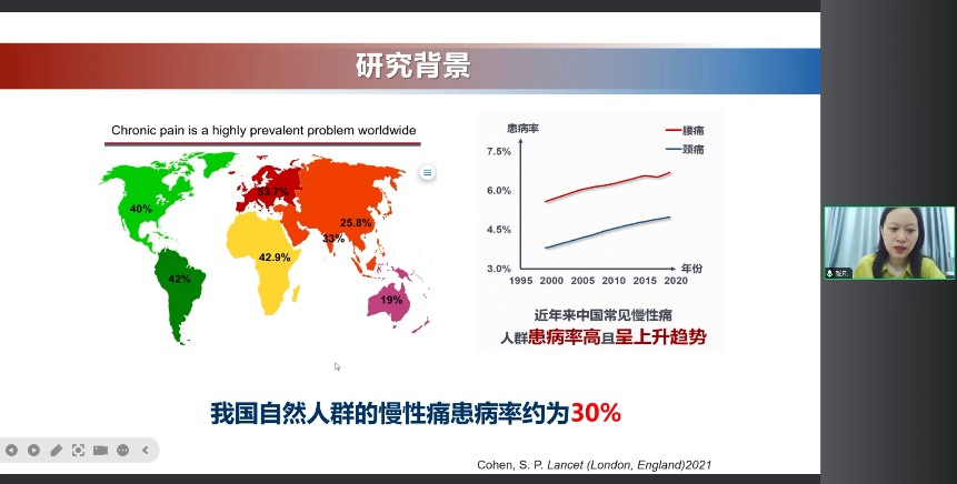 慢性疼痛的分布是非常廣泛的。 我國自然人群的慢性痛患病率約為30%,而且呈逐年升高的趨勢。但是目前臨床上治療慢性疼痛的藥物還非常的有限,像阿片類藥物具有非常強的成癮性,所以它的治療還需要進行更廣泛地拓展和探索。
