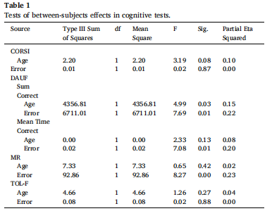 本研究采用因果比較的方法,通過控制年齡的影響,探討了空間感知、短時記憶、持續注意和計劃能力等認知功能,以及外向性、情緒性、冒險性等人格特征對空管人員人為失誤的影響。為此,我們從維也納心理測試系統(VTS)中選取了CORSI、TOL-F和EPP6等3個測試和DAUF、MR 2個測試來測量受試者的認知功能和人格特征。本研究選取了16名有錯誤歷史的空管人員和15名沒有錯誤歷史的空管人員作為受試者。