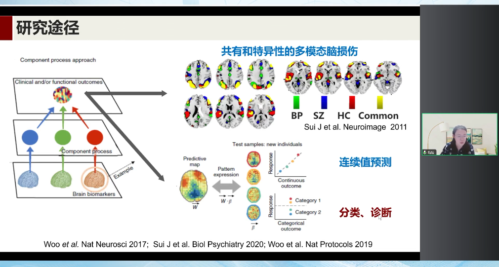 大家晚上好,很榮幸受到腦客中國的邀請,來給大家介紹一下我們團隊相關的工作。我來自北京師范大學認知神經(jīng)科學與學習國家重點實驗室,研究背景是計算精神病學,我們是希望能夠把一些AI、機器學習等腦影像模式識別方法應用到我們的多模態(tài)磁共振影像中,來實現(xiàn)精神疾病以及腦發(fā)育障礙的一些精準診療。我們希望通過客觀的影像學標記能夠幫助我們做到早期預警,療效預測和相關的優(yōu)化治療。