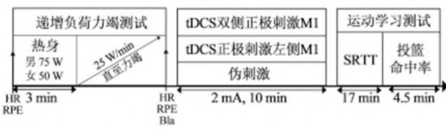 HR:心率;RPE:主觀疲勞感覺;Bla:血乳酸;tDCS:經顱直流電刺激;M1:初級運動皮層;SRTT:序列反應時任務。